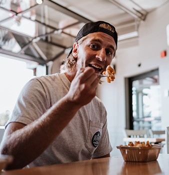 Genre moins de 45 minutes de Victoriaville, viens-t-en manger chez nous à la place!